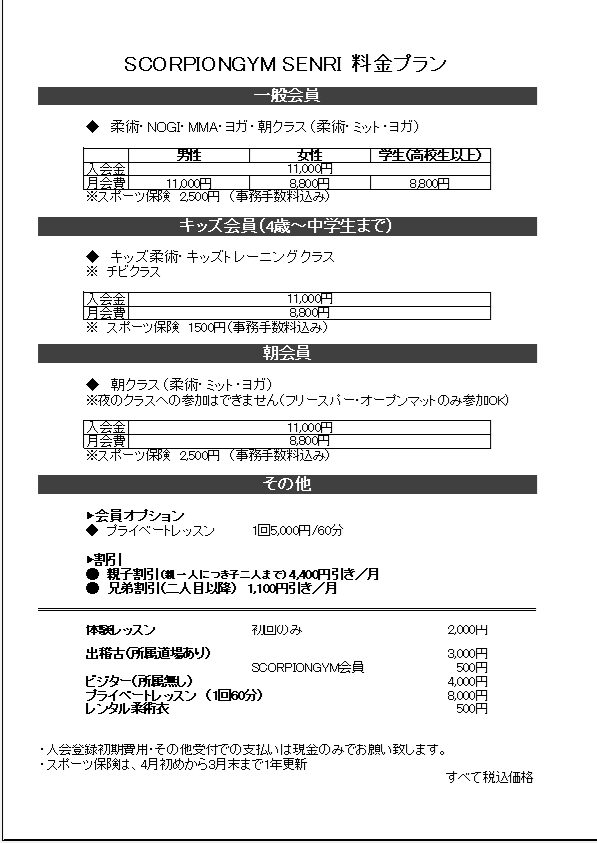 SCORPIONGYM SENRI~ブラジリアン柔術・総合格闘技・ヨガ・ピラティス~